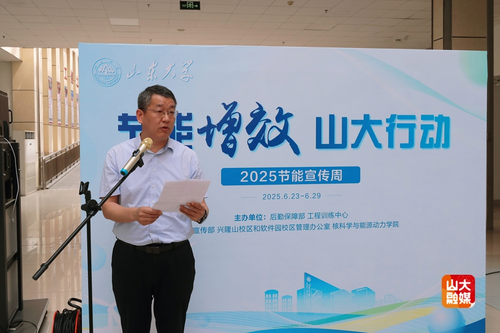 山东大学2025年节能宣传周启动仪式举行节能增效,山大行动——2025节能宣传周”启动仪式在工程训练中心进行。山东省机关事务管理局节能处二级调研员钟晨光、核科学与能源动力学院党委书记辛公明出席活动并致辞,工程训练中心主任宋锐、工程训练中心党总支书记孙玉玲、兴隆山校区和软件园校区管理办公室主任赵龙、核科学与能源动力学院副书记李永卫、后勤保障部党委副书记梁勇参加启动仪式。仪式由后勤保障部副部长苏保玲主持。