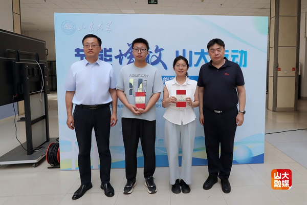 启动仪式上,钟晨光和宋锐为“2025年山东大学节水知识竞赛”的获奖选手颁发奖品,孙玉玲和赵龙共同为“2025年山东大学节能知识竞赛”启动揭牌。
